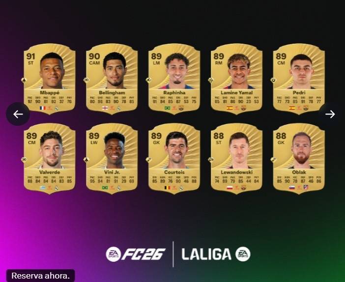 FC26官方西甲球员评分榜:姆巴佩91最高,贝林厄姆90,亚马尔89